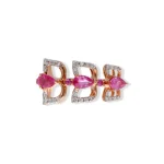 The Blossom Cascade Ring delicately intertwines diamonds and the enchanting hue of pink sapphires, creating a captivating cascade of blossoms. This ring is a harmonious blend of nature’s beauty and precious gemstones, radiating elegance and charm in every detail.