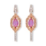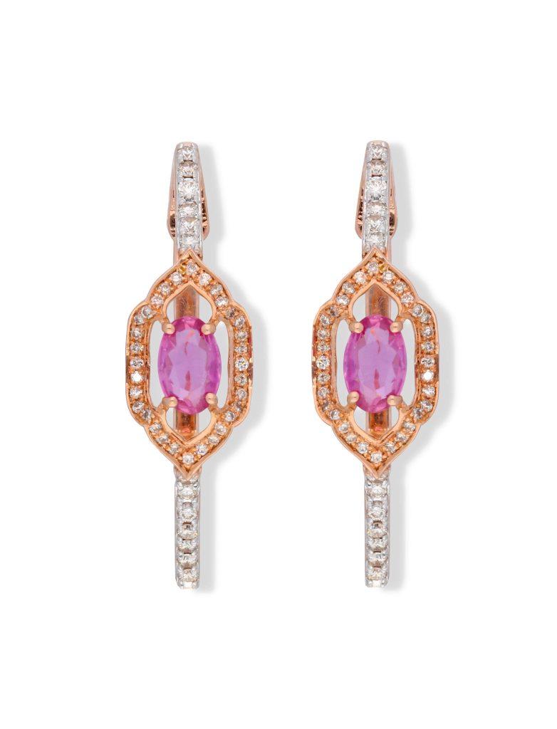 The Ziva Geometric Pink Sapphire Earrings are a modern accessory, seamlessly blending a captivating arrangement of pink sapphires in a geometric design with the subtle sparkle of diamonds. These chic earrings effortlessly combine contemporary flair with timeless elegance, adding a versatile and eye-catching touch to your collection.